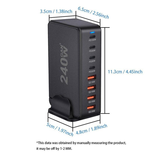 240W USB C Desktop Charging Station, 8 Ports PD 3.0 USB C Fast Charger Block for Cellphone Smartphone, Fast Charger Power Adapter for Macbook Pro/Air, DELL, Steam Deck, Iphone, Electronic Mobile Phone Accessories
